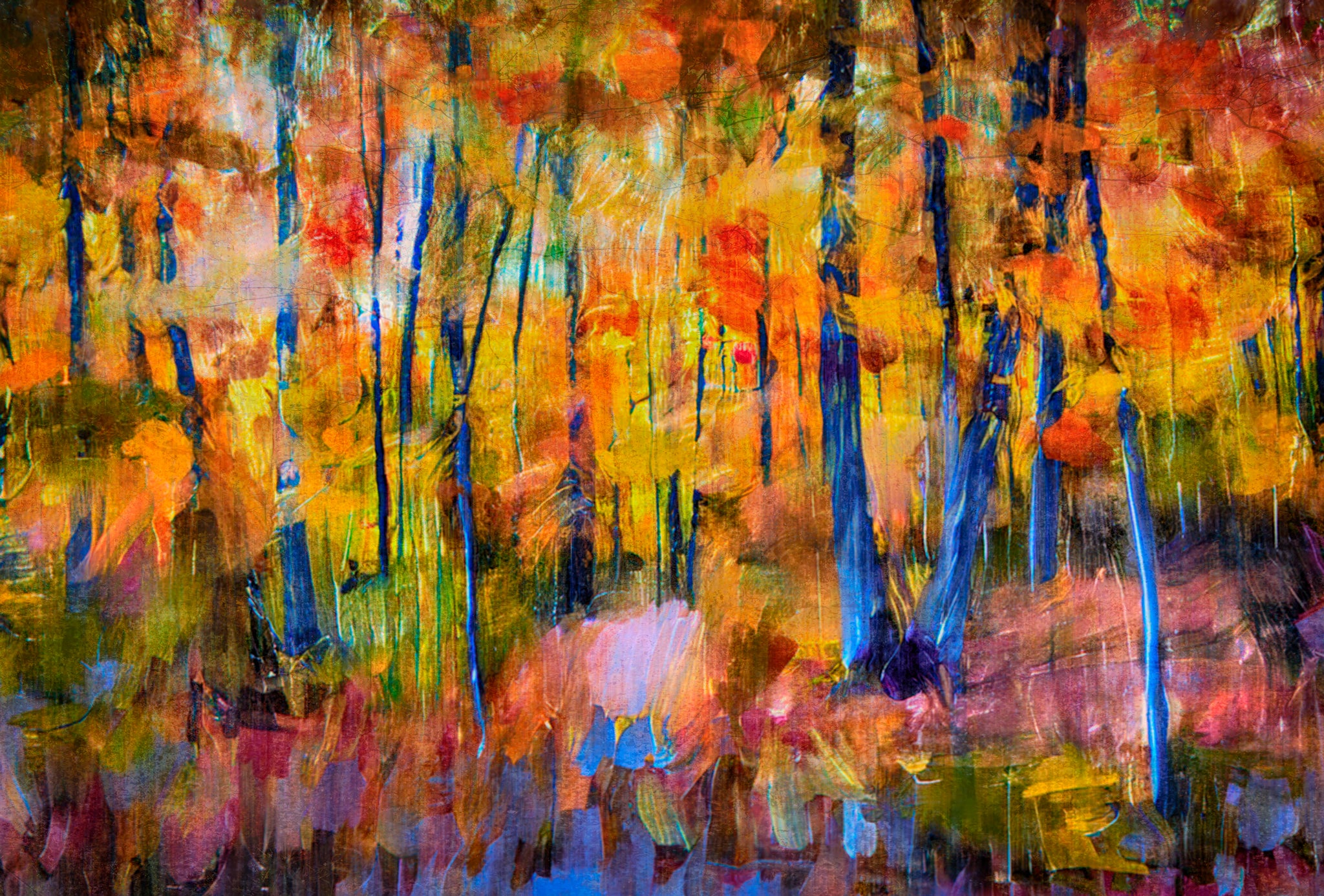 Conversation starter: The painterly layers keep revealing new details the longer you look—like a memory of fall rather than a literal scene.