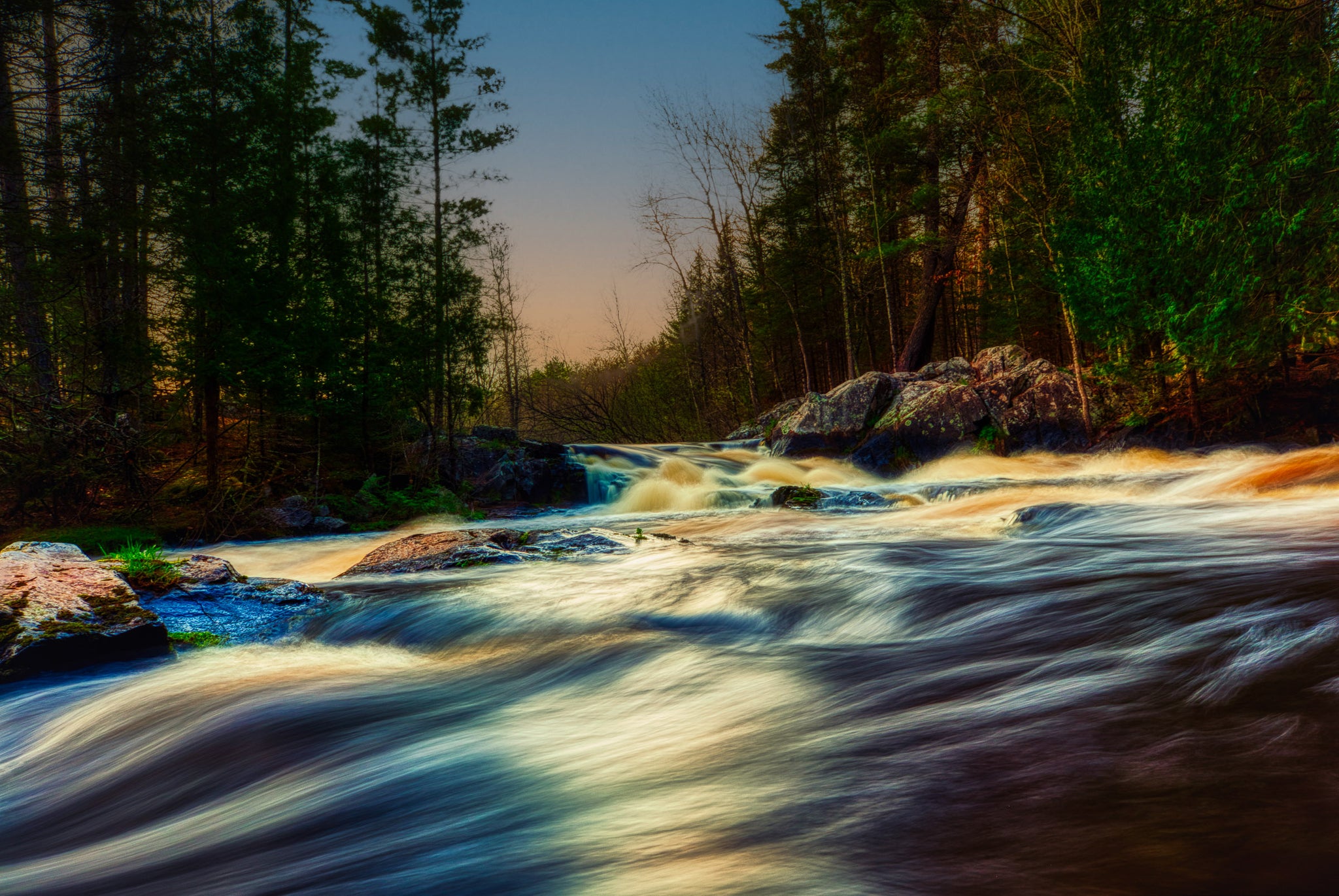 Wild, luminous, and full of motion, “Horseshoe Flow” captures the rush of Northwoods water as it slides over rock in a painterly, long-exposure sweep. The deep forest shadows and electric highlights create a dramatic contrast that feels calming up close—but powerful from across the room. It’s the kind of statement piece that instantly adds energy, texture, and a sense of “being there” to your space.